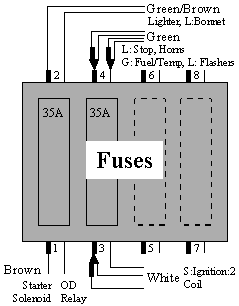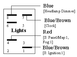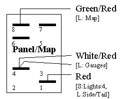 | All gauges are by Jaeger. Each gauge has one of a string of lamps (Red) coming off the harness. Each gauge, but Tach and Oil is grounded in series with the others. | |||||