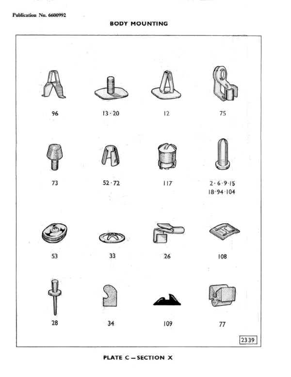 PRESSED STEEL Co. Ltd. COWLEY OXFORD <a logo of P/S in a yin-yang design> SWINDON & LINWOOD REGD. TRADE MARK MANUFACTURED UNDER ONE OR MORE OF THE FOLLOWING BRITISH PATENTS <3-column by 12-row list of patent numbers> OTHER PATENTS PENDING |